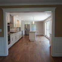 Providing three options for the direction of the renovation, the clients chose one that expanded and oriented the kitchen towards the rear patio with seating at the center island. The Dining and living rooms are accessed off the kitchen through cased openings, which allow for flow between spaces, with clear definition between them.